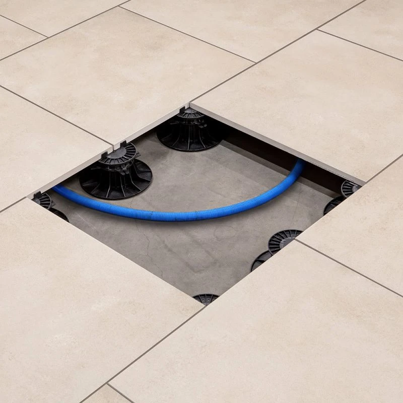 - Il est recommandé d’installer des cales amortisseurs sur la tête des plots avant d’ajouter les dalles. Cet accessoire permet de réduire les bruits et les vibrations de la terrasse en carrelage grès cérame ;