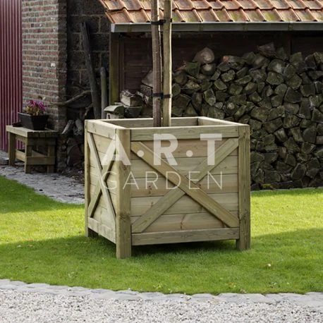 Réalisé en pin rouge du nord avec le traitement autoclave spécial de Collstrop, le bois reçoit également un additif hydrofuge pour une protection longue durée. Ce bac est réalisé avec des profils à rainure et languette de 21x135mm sur des poteaux 90×90 mm.